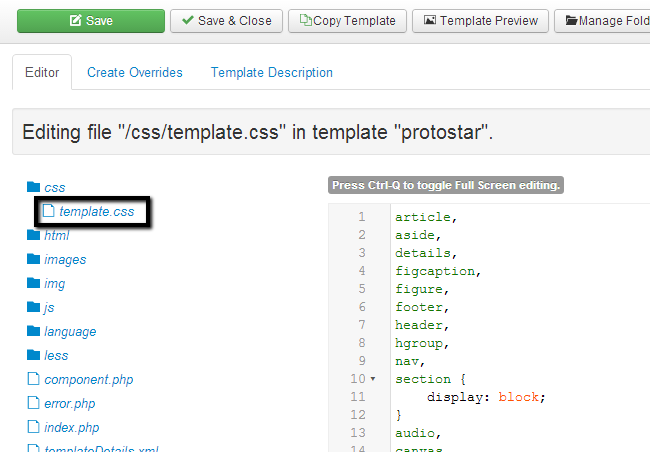 When you open a certain of the template’s files for editing, simply click on the Save & Close button to keep the changes.