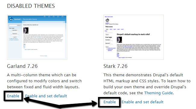 To enable a theme, you need to access the theme manager. Then locate the Disabled Themes section and click on the Enable button next to the theme that you wish to activate on your website.