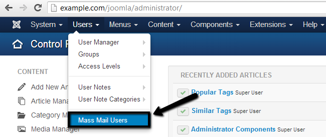 This tutorial reviews the process of sending a mass email to a group of users on your website. First you need to log into your website as administrator and then navigate to the Users tab and then Mass Mail Users.