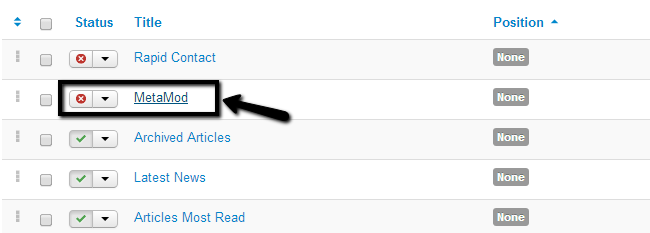 Click on the MetaMod module to access it’s configuration panel.