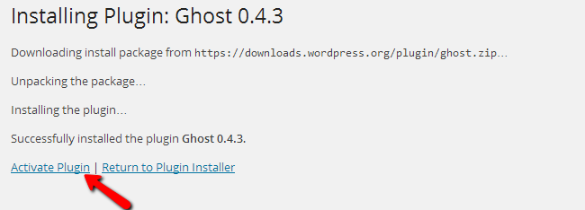 Input the WordPress Ghost Plugin name into the Search field and install the Ghost plugin.
