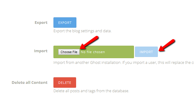 When you have your WordPress posts exported to a file stored on your local computer, please refer to your Ghost blog admin dashboard debug section. You can access the Ghost admin debug section using the following URL: