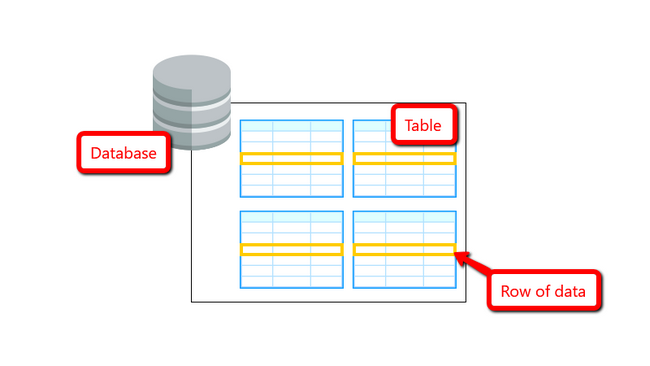 A database is a collection of data organized following methods defined by its developers. In the most commonly used architecture, a typical database will be storing data in rows which on the other hand are contained in a table. In simple words Database -> Table -> Row of data.