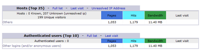 Now if you go again in your Awstats and click on the same domain, you will see an empty Hosts section.
