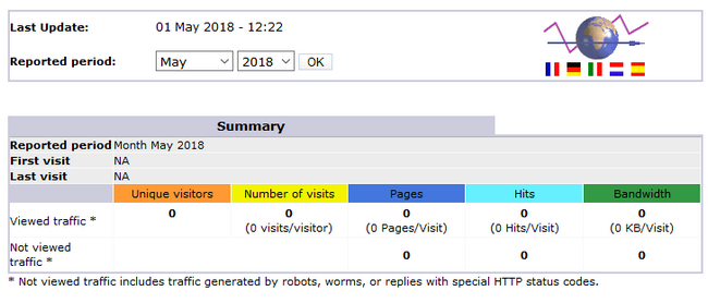 If you wish to remove all of the statistics for that month and that domain, delete the entire text file. Please note, that removing the file without creating a backup of it will result in that statistic information being lost. In our case, if we remove awstats052018.test.com.txt, we will then see the following in Awstats.
