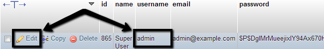 Then locate the admin user on your website which is normally set to admin. Click on the Edit button next to the admin user on your website.