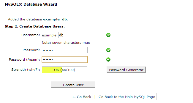 First you need to create an empty database on your account and user for it. This user must have All Privileges to your database. Log into your cPanel account and navigate to the Databases tab and select Database Wizard.