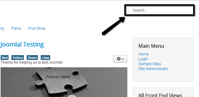 To do so, you need to access your Joomla website. Then locate the search box at the top right corner of the screen.