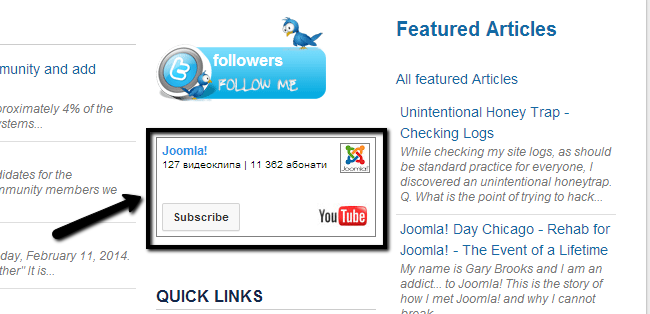 This tutorial shows how to subscribe to Joomla blogs and security updates. To do that you simply go to Joomla Community Portal. You will notice two sections one for subscribing to Joomla updates via Tweeter and one via YouTube.