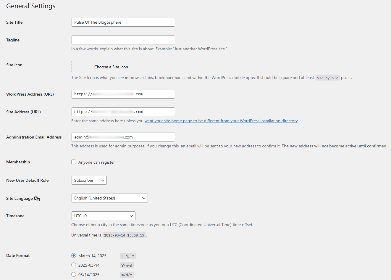 - Site Language - The default language of the WordPress dashboard;