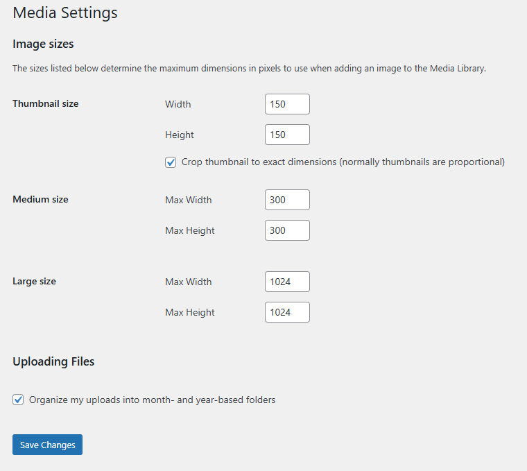 Finally, the tick at the bottom will instruct WordPress to organize your uploads (not just the images) in directories based on the year and month of the upload.