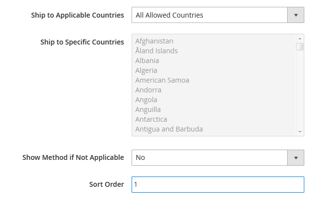 - Ship to Applicable Countries - To only use this method in certain Countries, select them from the list below this option