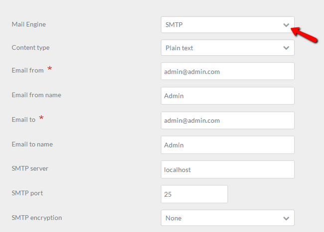 - Mail Engine - Here you can choose from either SMTP, Sendmail or PHP Mail