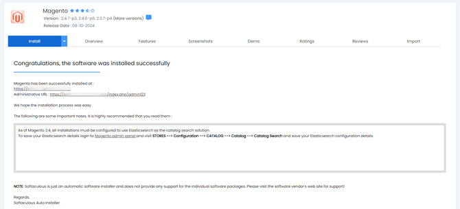 And there you have it! You have successfully installed Magento via the Softaculous Apps Installer! Quick and easy! You are now ready and set to begin building your website with one of the world’s most robust and advanced eCommerce platforms.