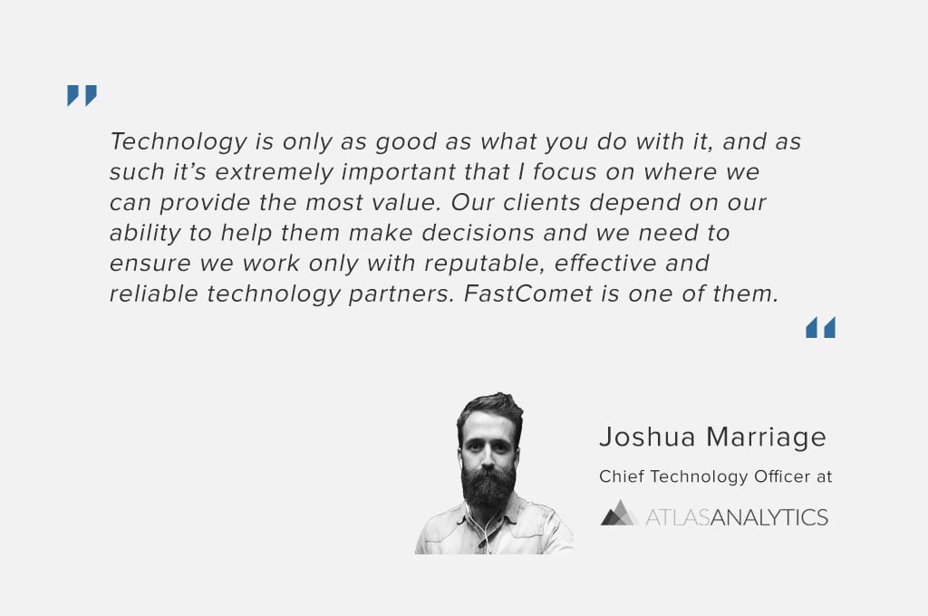 Joshua Marriage: Technology is only as good as what you do with it, and as such it’s extremely important that I focus on where we can provide the most value. Our clients depend on our ability to help them make decisions and we need to ensure we work only with reputable, effective and reliable technology partners. FastComet is one of them.