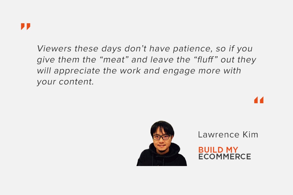 Viewers these days don’t have patience, so if you give them the “meat” and leave the “fluff” out they will appreciate the work and engage more with your content.