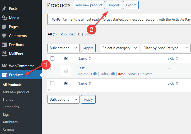 Alternatively, head to Products and click Import at the top of the screen.