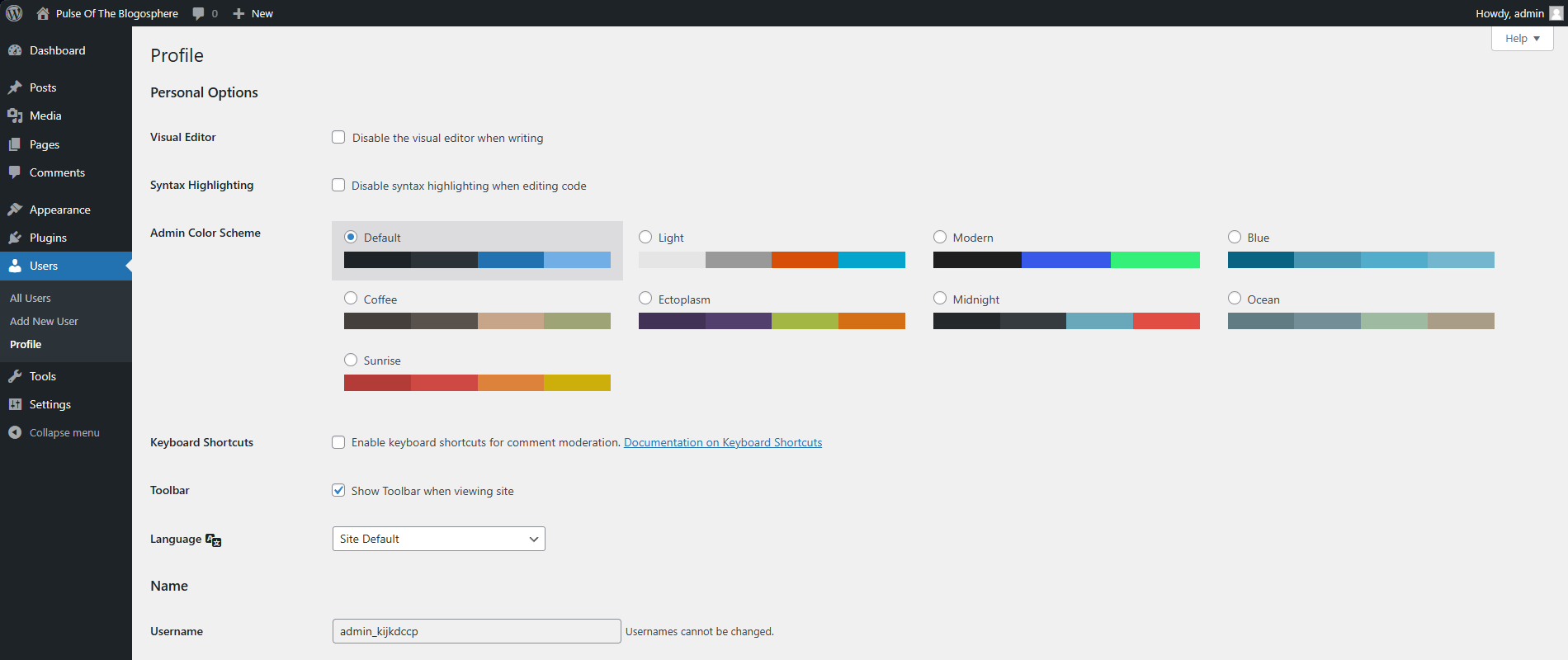 - Admin Color Scheme - You can choose a color scheme for your admin profile from here. This will change the colors of the dashboard as a whole;